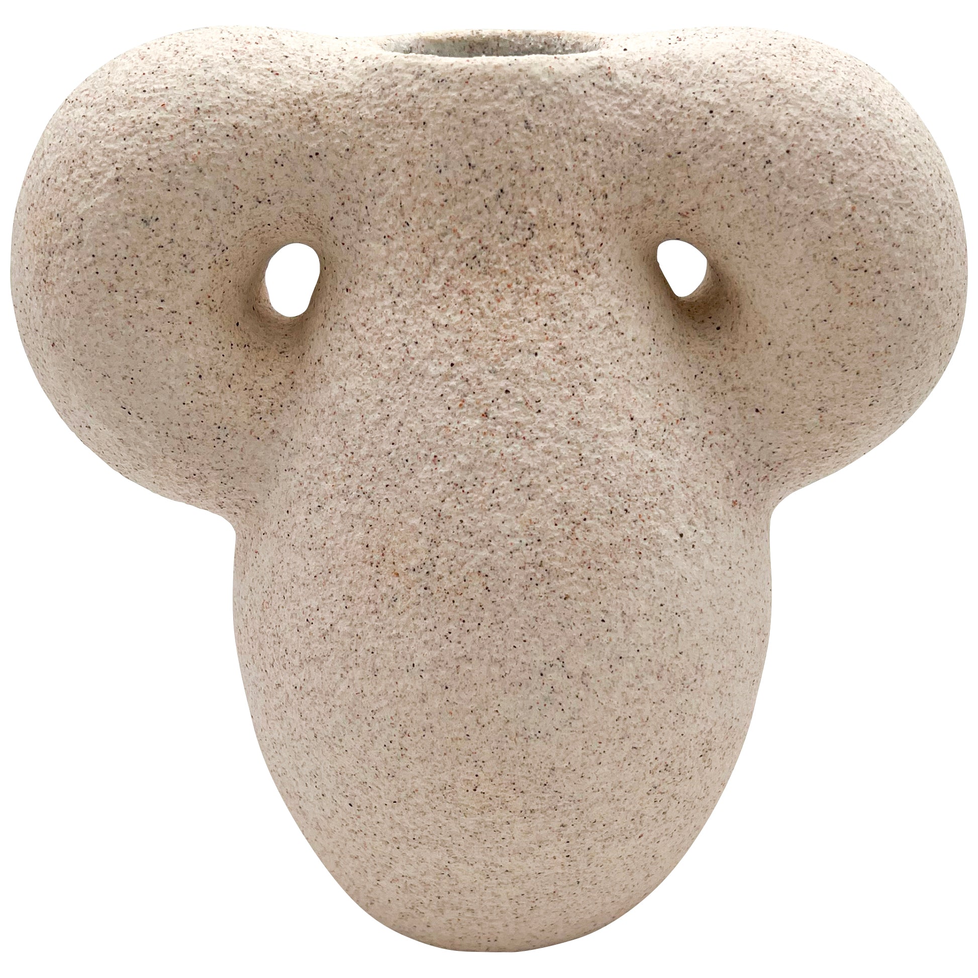 Kyoto-based ceramic artist. After studying ceramics at Kyoto University of Art and Design, she started her ceramic brand “dona ceramic studio” in 2015, pursuing new possibilities in ceramics under the theme of decorate-orijin-nature-art (=dona). The textures and organic forms of his works, which he produces using a unique technique of mixing and firing sea sand he collects himself, are impressive. They evoke the timeless existence of ancient stone sculptures and drifted objects that have washed up on the beach over long periods of time. The work has a pleasantly calm appearance, with its plump and soft forms and decorative elements harmonizing effortlessly.