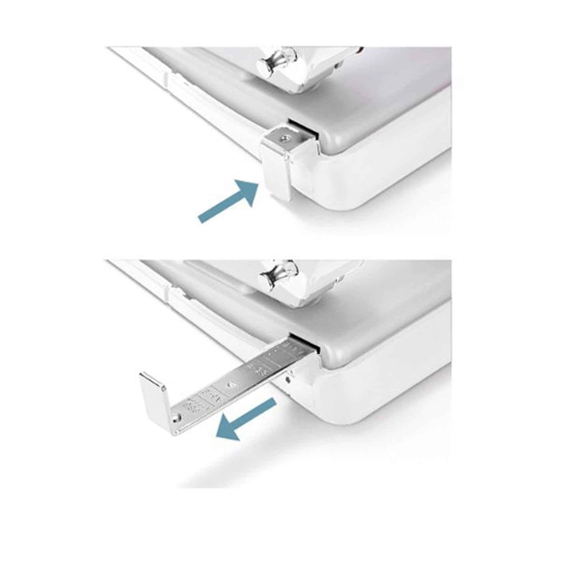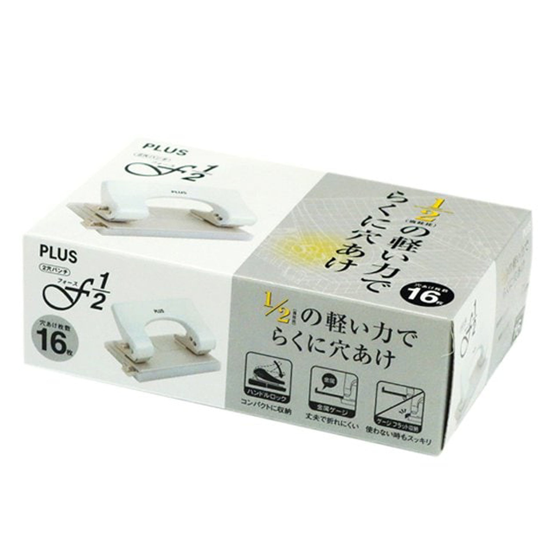 2-hole punch that can punch holes with 50% less force (compared to the manufacturer's conventional product). The side gauge can be turned down so that it does not get in the way when not in use. Equipped with a handle lock function for compact storage.