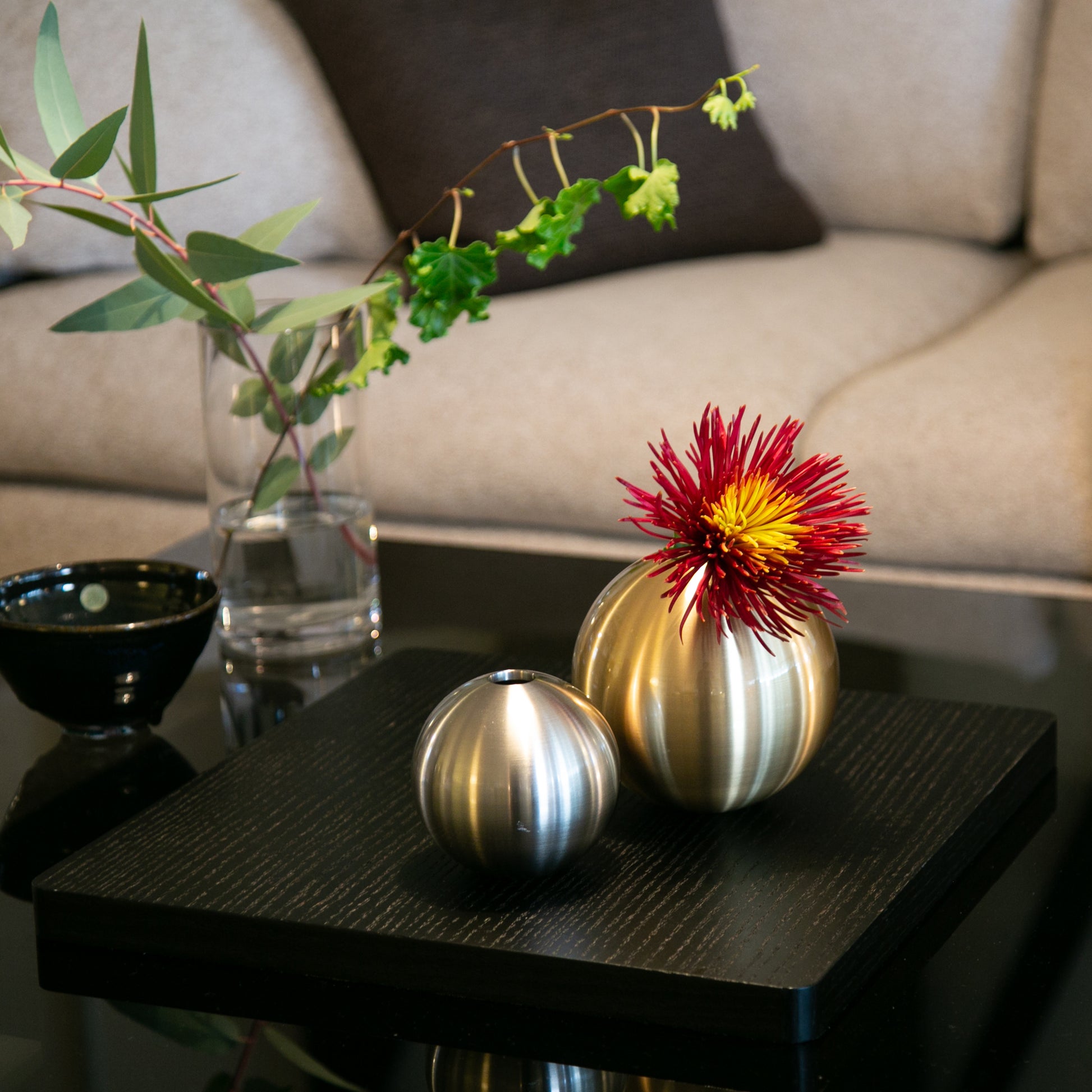 Each piece has been given a hairline finish by skilled craftsmen with a rokuro finish to bring out the beauty of the metal to the fullest.