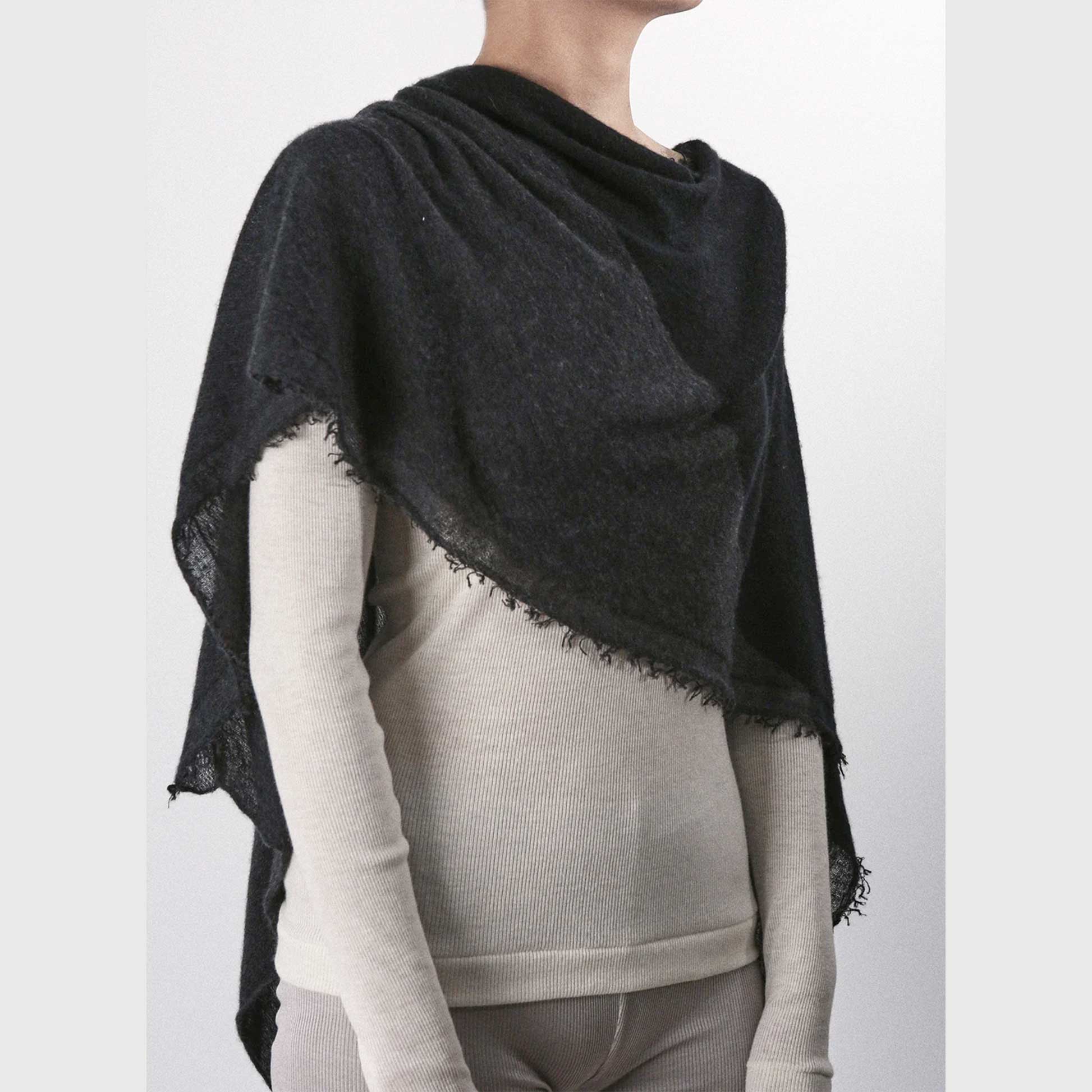 Taking advantage of the delicate, high-quality cashmere yarn's properties, this free-form stole is knitted naturally without any force, allowing for a variety of different looks depending on how you wrap it.