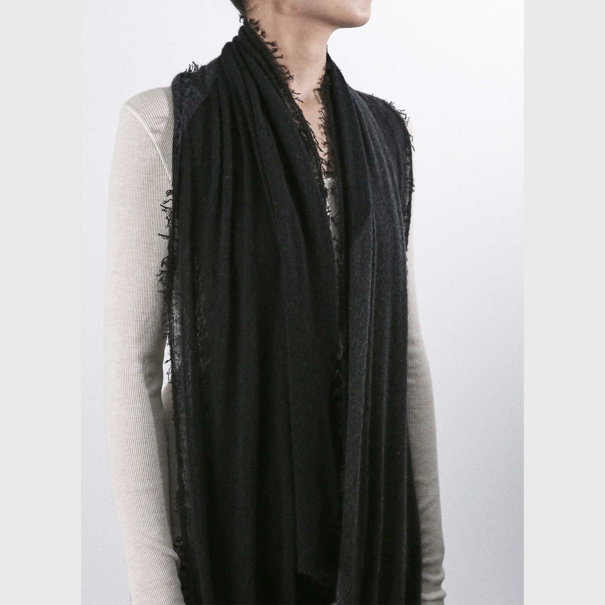 This GRISAL stole is crafted from 100% rare Alashan cashmere, known as the "finest cashmere of cashmere."