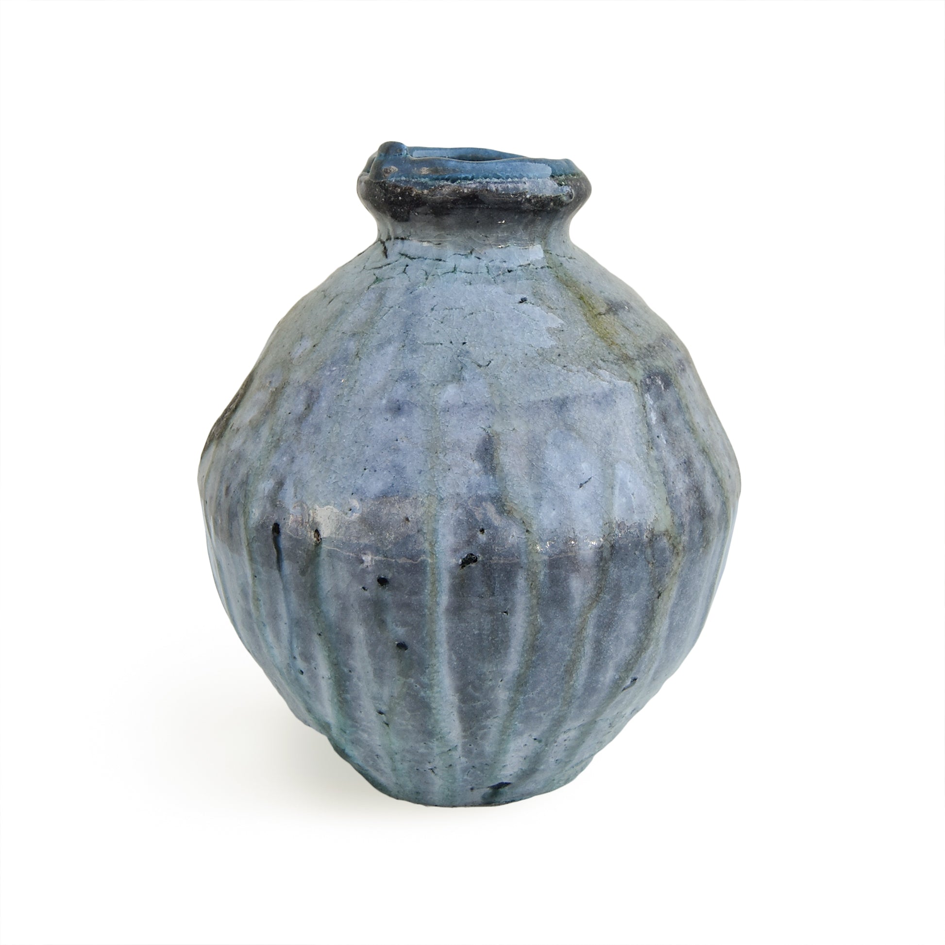 Using clay and stones dug in the mountains, he fires his vessels over a wood fire.