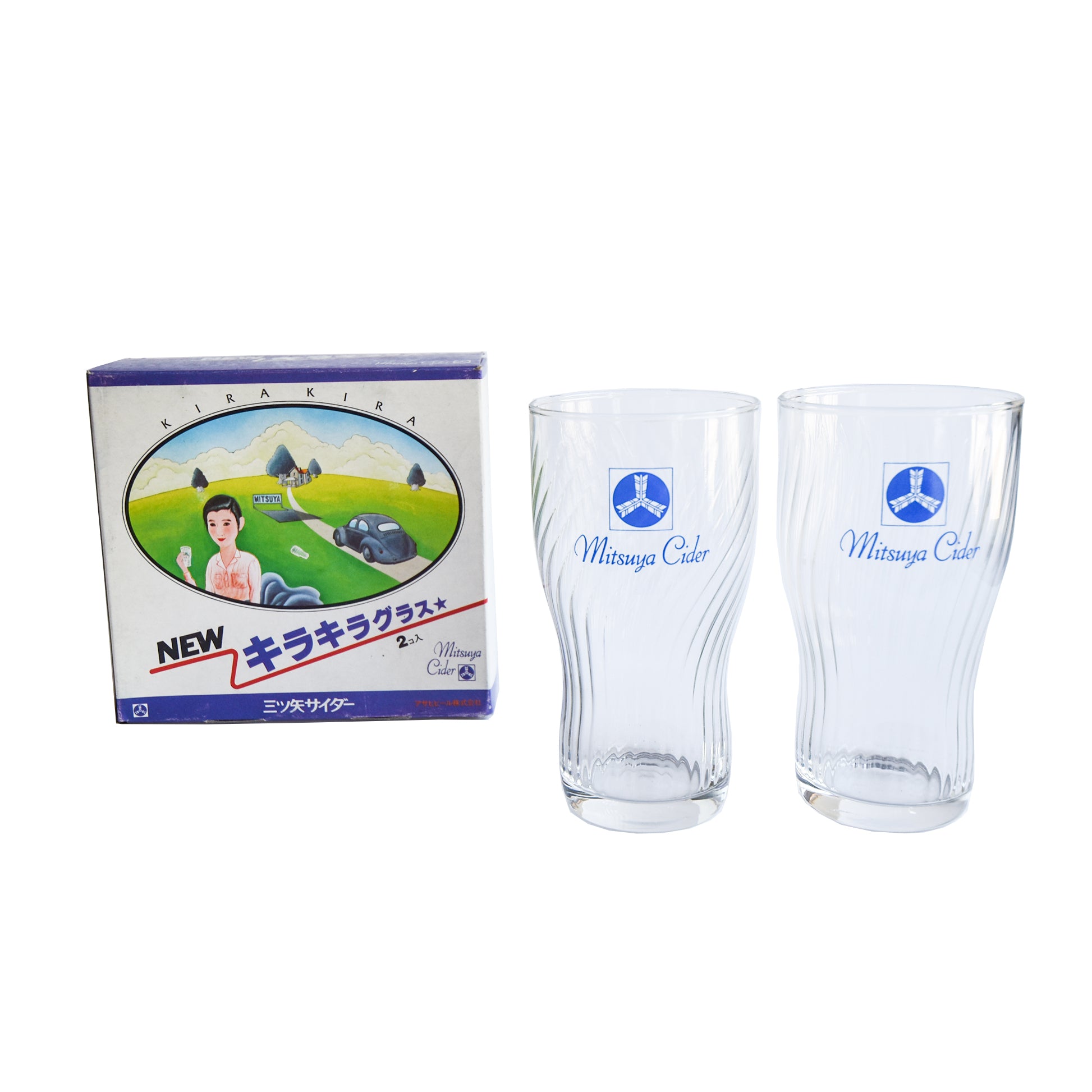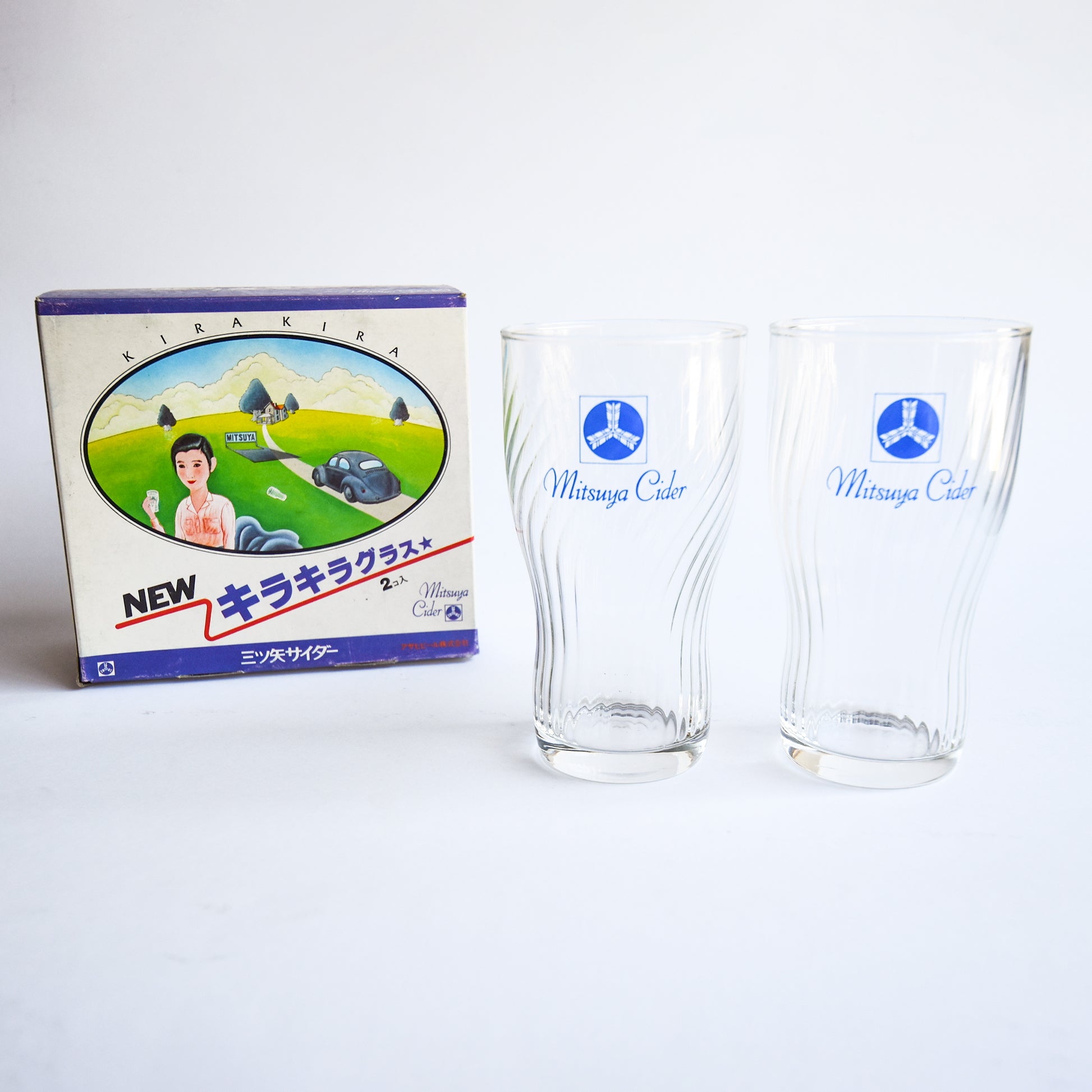 1970s Mitsuya Cider NEW Kirakira Glass Set (2 Pieces) with Box
