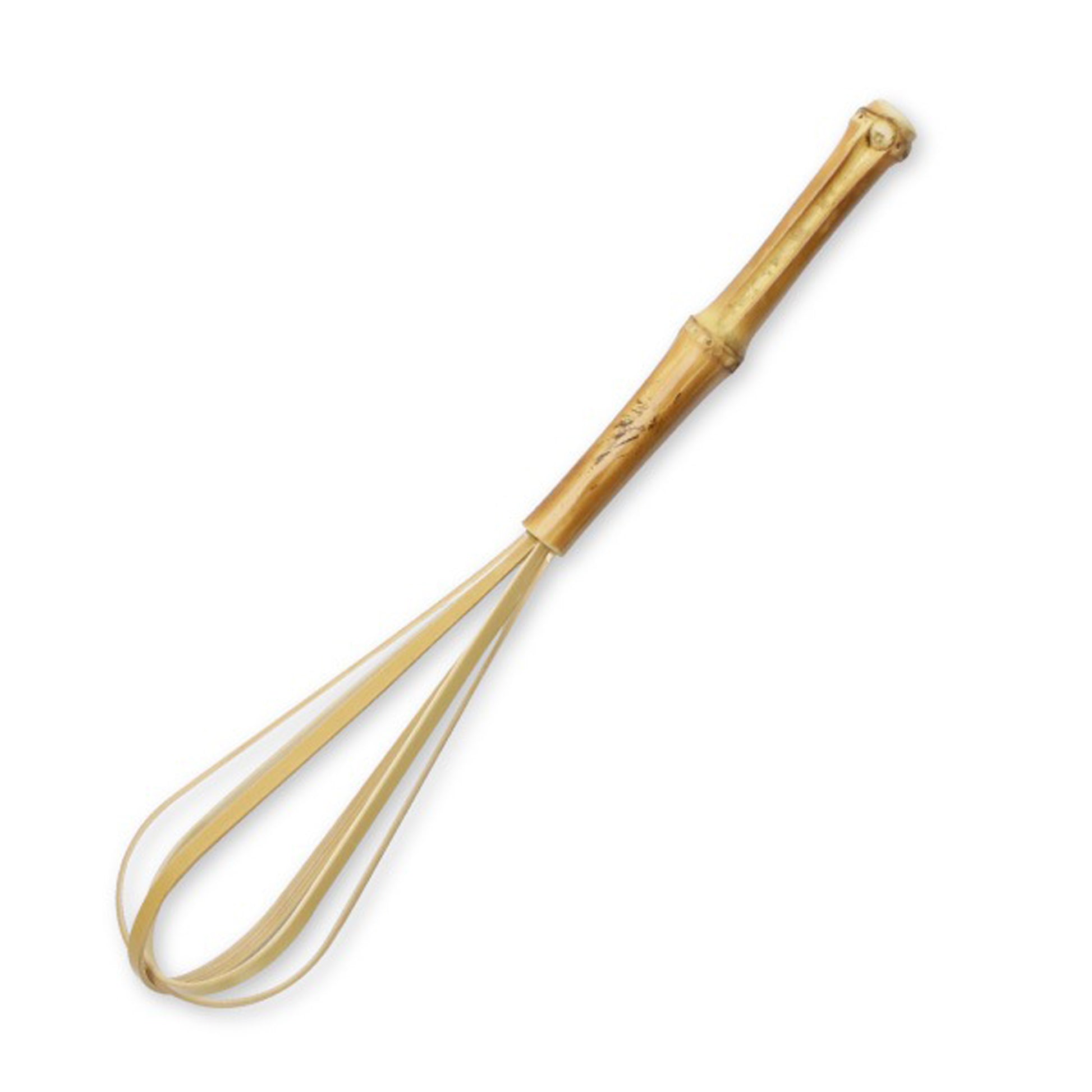 The handle is made from root bamboo. Its natural bumps fit comfortably in your hand, making it easy to grip and use. Being made of bamboo, it’s gentle on pots and bowls and won't cause scratches.