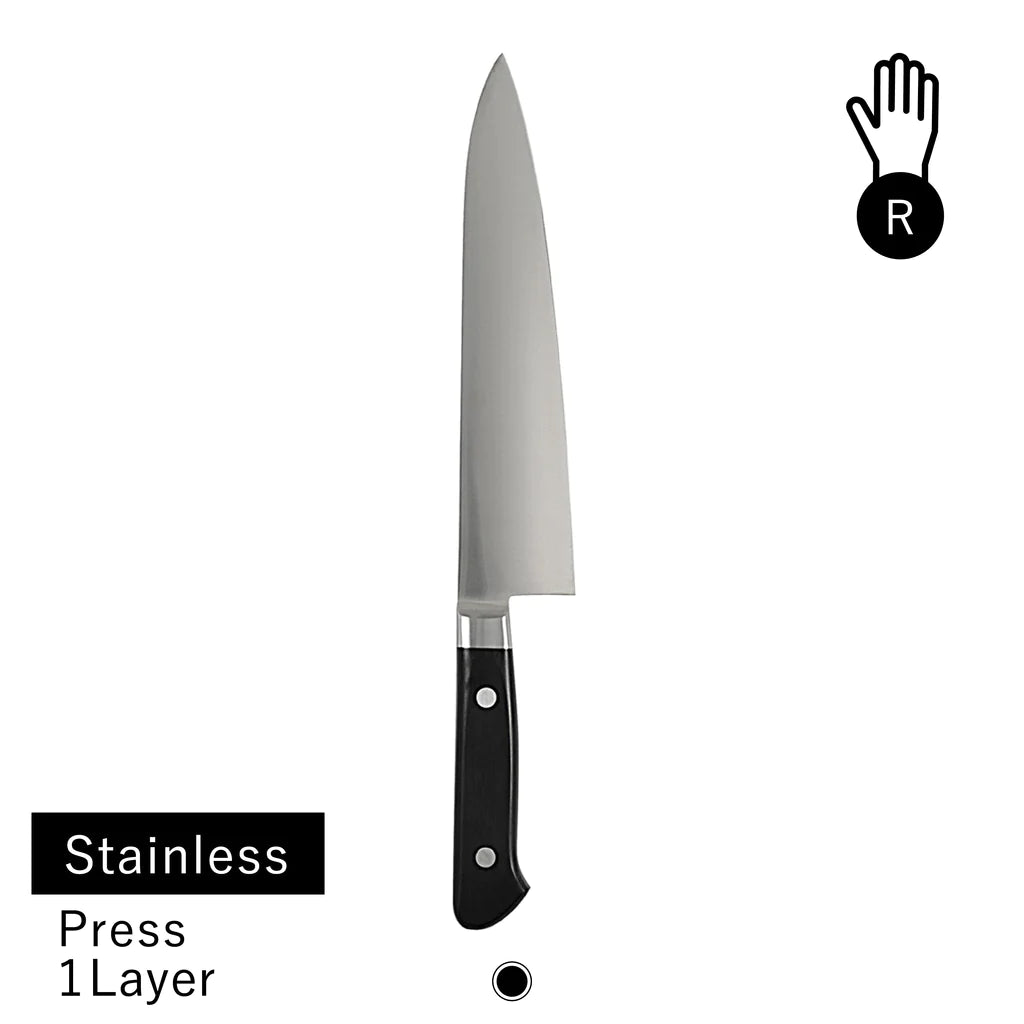 The blade material is using V1 stainless steel, which has good balance for its lasting of sharpness and easiness to sharpen. By including 14% of Chrome, it has high corrosion resistance. The simple timeless design is perfect for professional use too.
