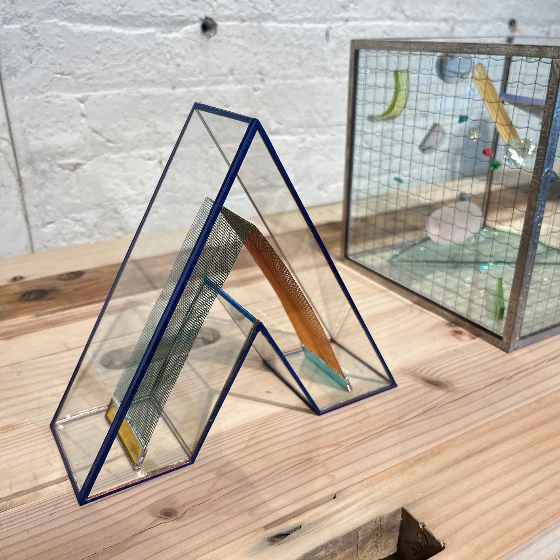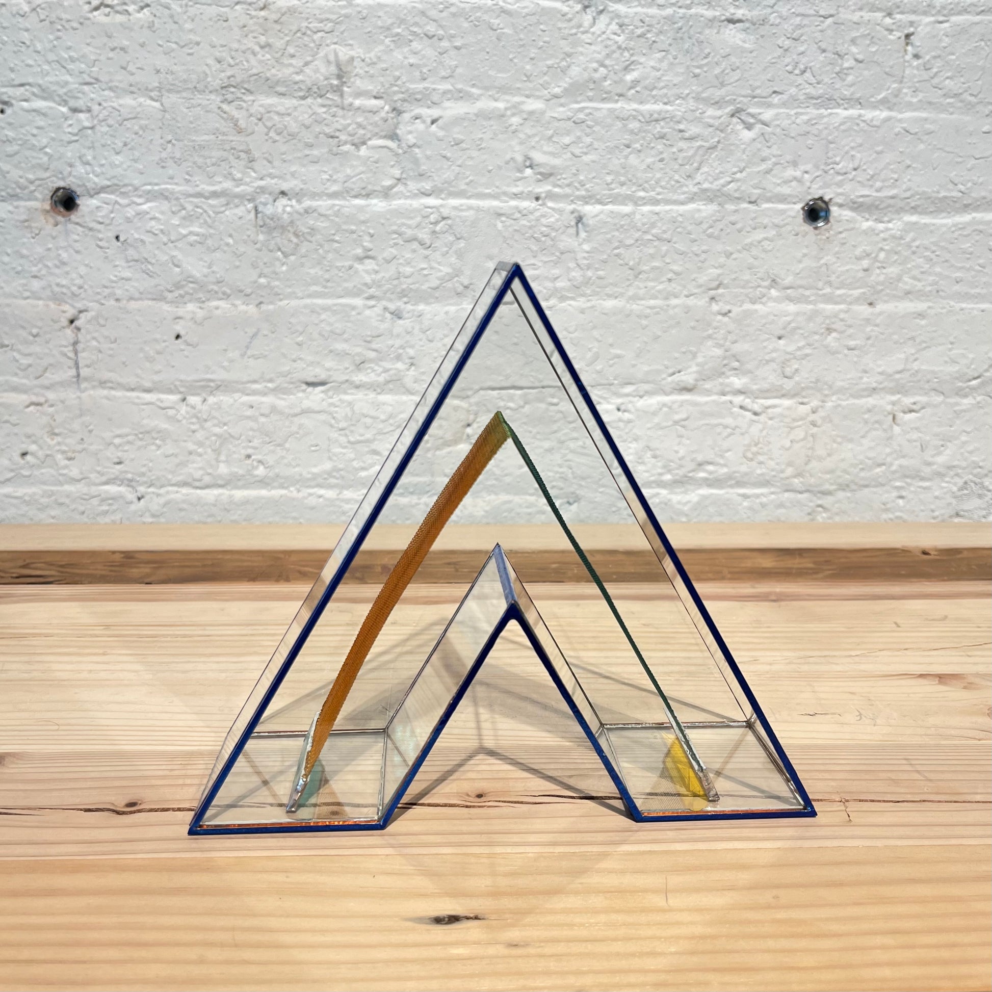 Born in Tokyo, Japan in 1986. Graduated from Tama Art University. 2016, Wada launched the glassware brand "TOUMEI" in Fukuoka, with glass artist Baku Takahashi. Using techniques mainly applied to stained glass production, she creates works by combining glass with "something she discovered" as a material, mainly wood, stones, and sometimes seemingly discarded objects such as fragments of plastic.